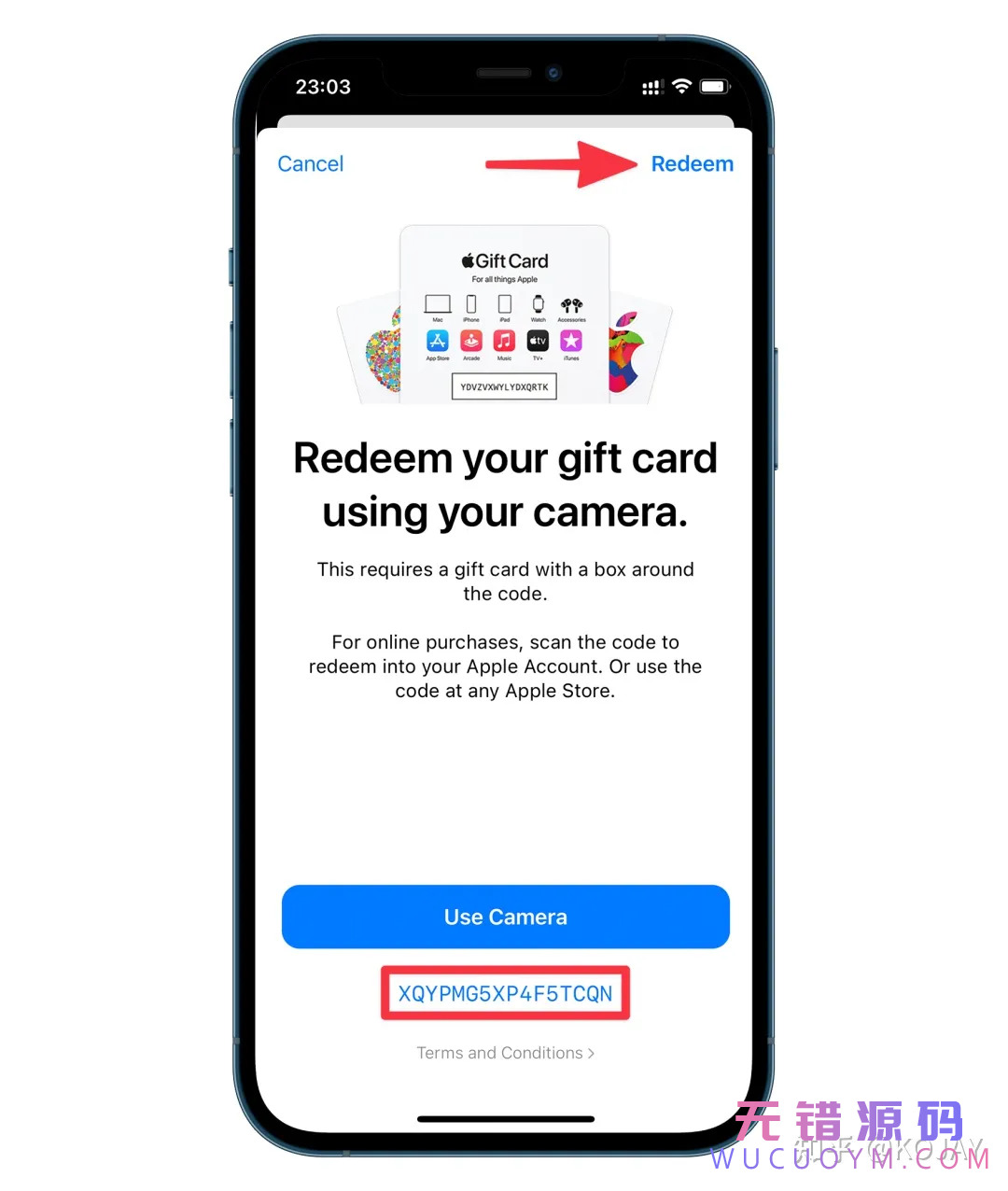 把卡号粘贴到 输入代码 Enter Code Manually 处,最后点击右上角的 兑换 Redeem。