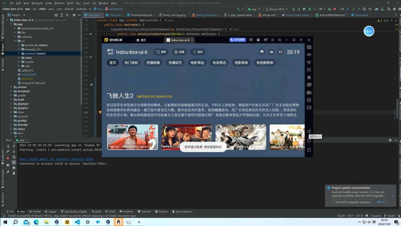 在app/src/main/com/modile/android/tv/App.java 最底部修改对接配置,有备注