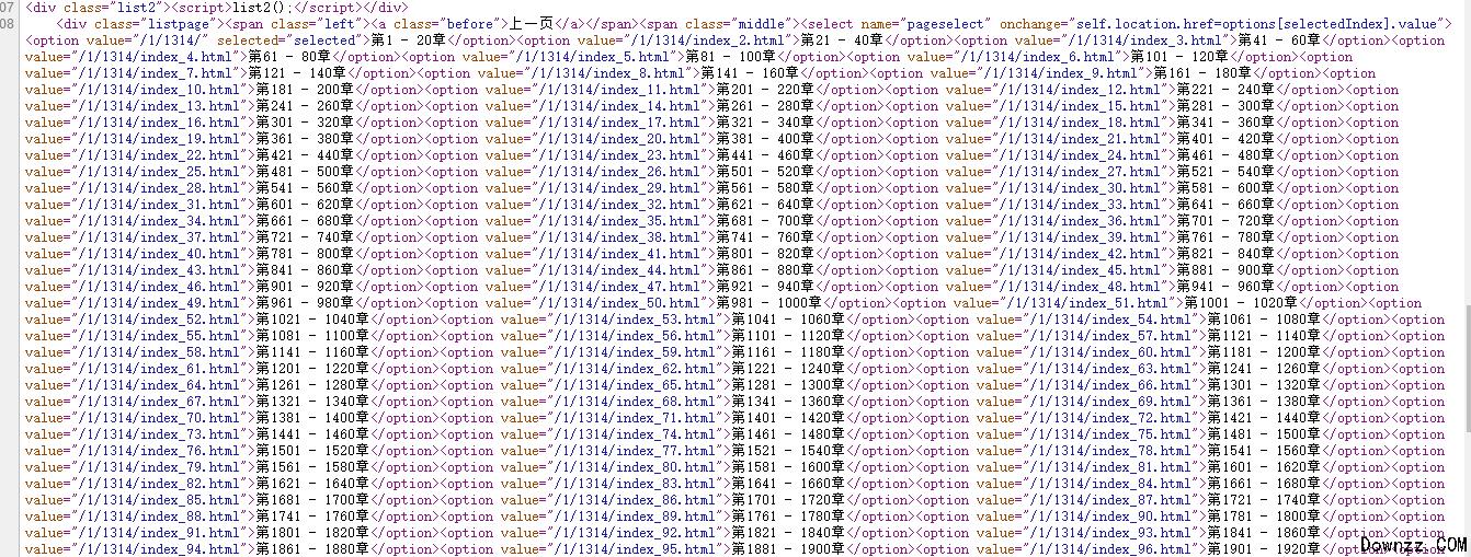 读取了第一页的数字,最后一页的数字,当前页的数字,并且知道每页输出20个,于是就可以把这些值处理后赋值到分页代码中,而被删除的option标签对,也就由js生成,一起放进select中了。有i和j这两个字段,就是显示多少章到多少章,简单的计算公式就可以实现。