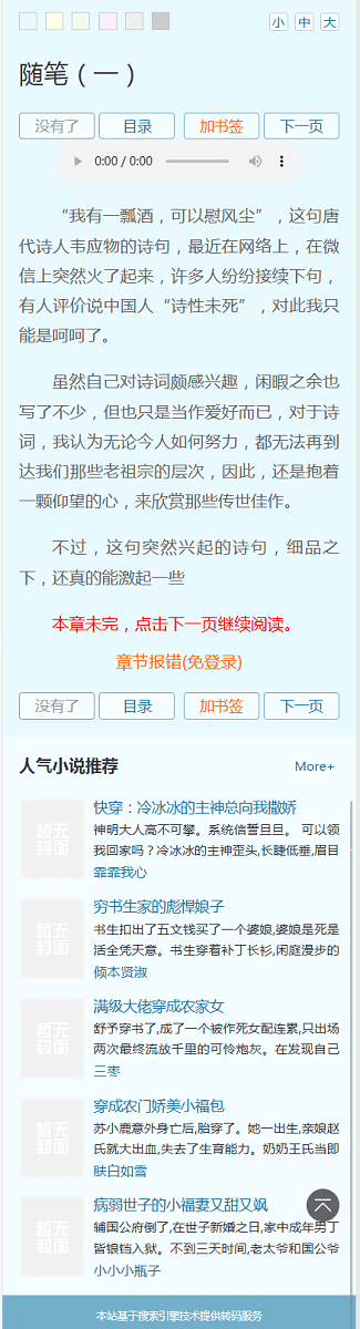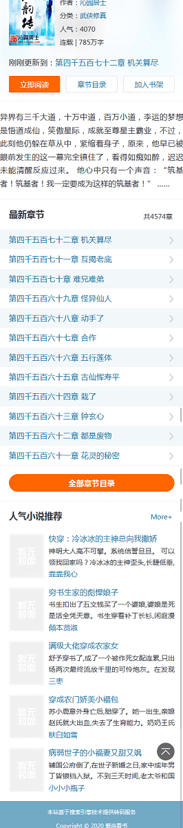 2.使用全新小说布局及配色,搭配船说的高性能程序和整页REDIS缓存技术,带来秒开效果.