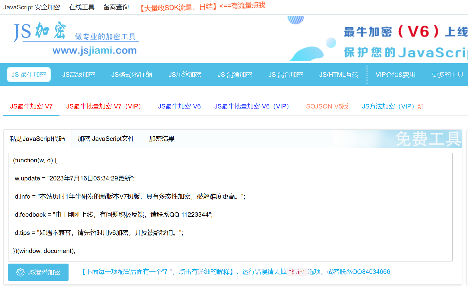 * 加密工具已经升级了一个版本,目前为 jsjiami.com.v7 ,更新了加密算法,缩减了体积;