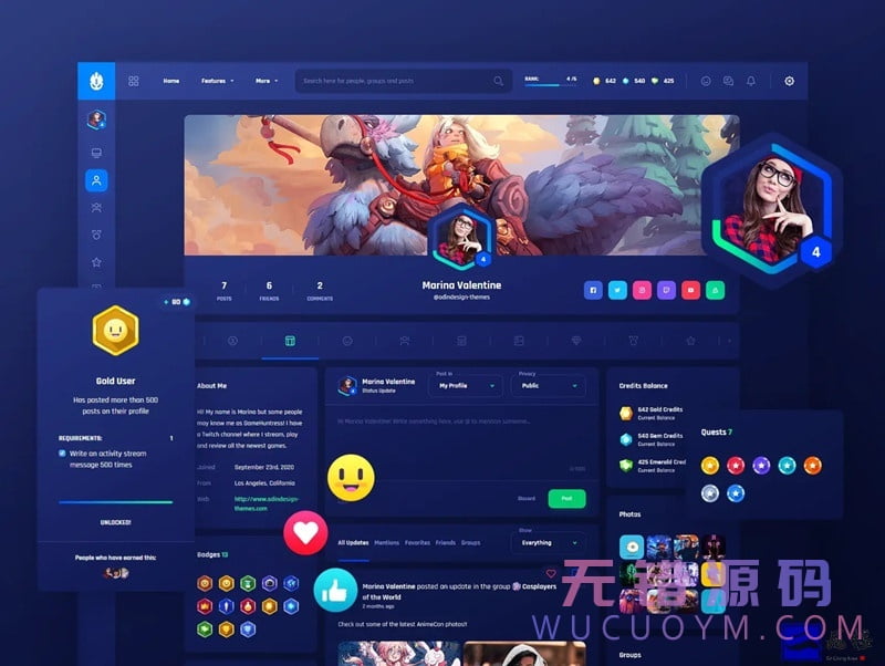 Vikinger主题是国外非常流行的WordPress+Buddypress社交社区!颜值在线,通过完整的个人资料、趋势、群组、徽章、任务、等级、积分、论坛等完善功能,既可以作为个人博客,也可以作为交流社区论坛,让你轻松建立社交论坛网站!该源码为中文汉化版的WP社区主题模板,懒得测试了,有需要的自己下载学习。