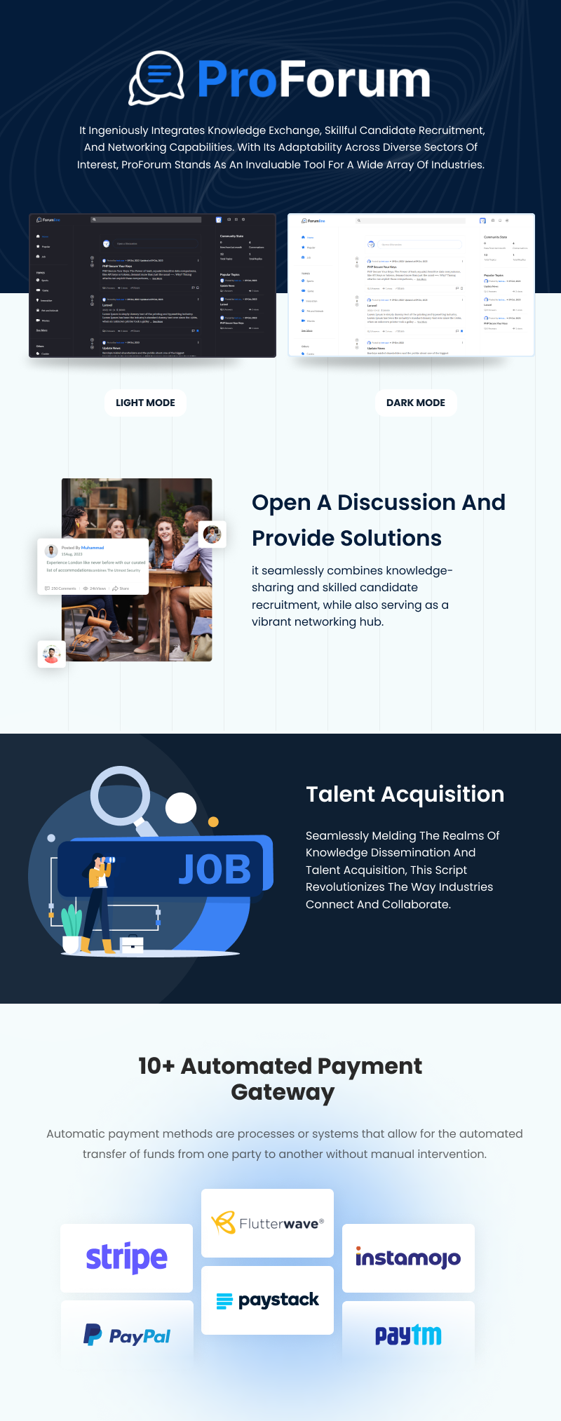 Beyond its seamless integration of knowledge-sharing and skilled candidate recruitment, it introduces a unique credit system and supports over 10 payment gateways. What sets ProForum apart is its user-friendly installation process that requires no coding knowledge. This platform proves invaluable across various industries, providing a secure and seamless experience for all users. With stringent security features and a sleek interface, ProForum sets a new standard in professional forums and job platforms.