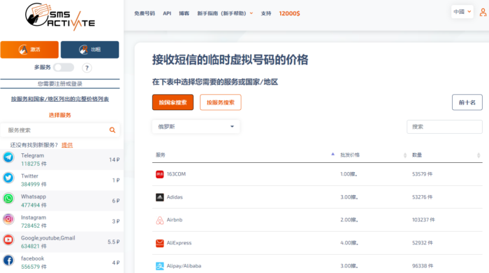 SMS-Activate 平台的手机号码非常多,就是只能选择业务然后使用。对于一些冷门的业务可能无法接收到短信。