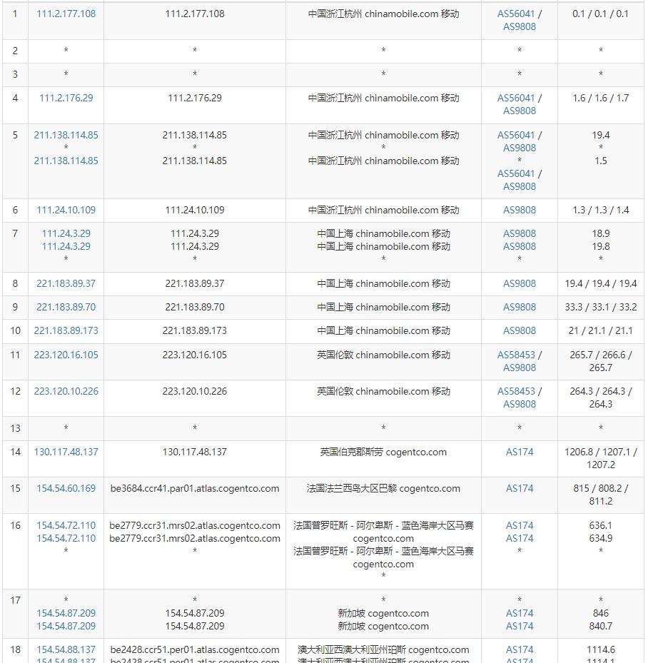 移动网络就更绕,先到欧洲英国、法国,然后经过新加坡,最后到达澳大利亚机房。