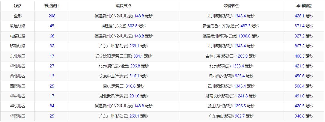 可以看到全国三网Ping的平均延迟在428ms左右,其中电信线路延迟是最低的在327ms左右,其次是联通网络延迟在371ms左右,最后是移动网络延迟在807ms左右。移动网络的延迟比较离谱了。